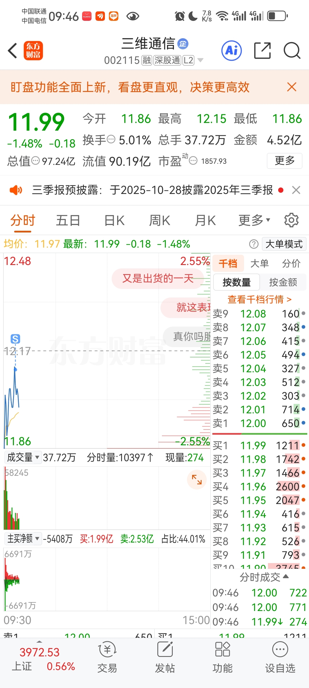 $三维通信(SZ002115)$ 不符合预期,该跑就跑