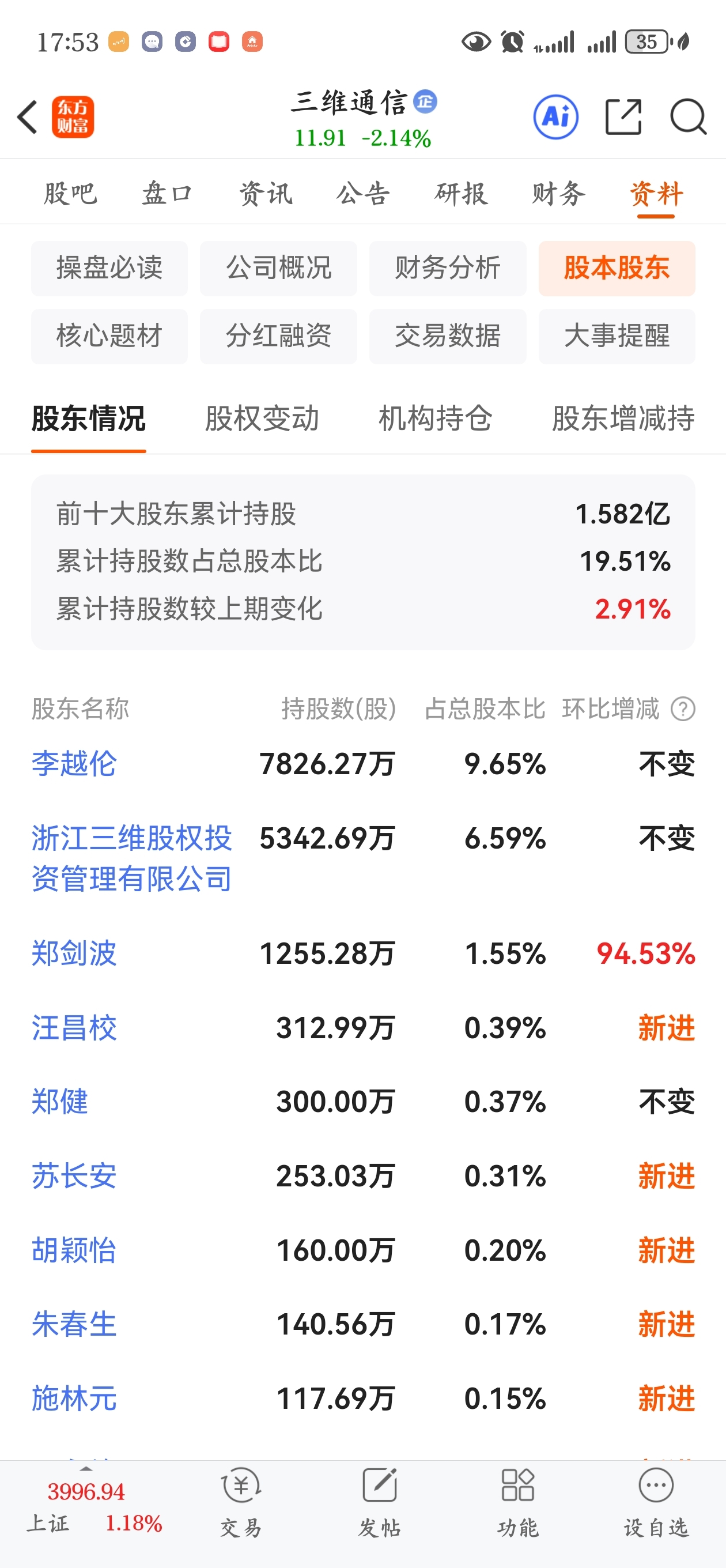 $三维通信(SZ002115)$ 这个郑剑波买了很多三维股票,明天开始我也加仓了。