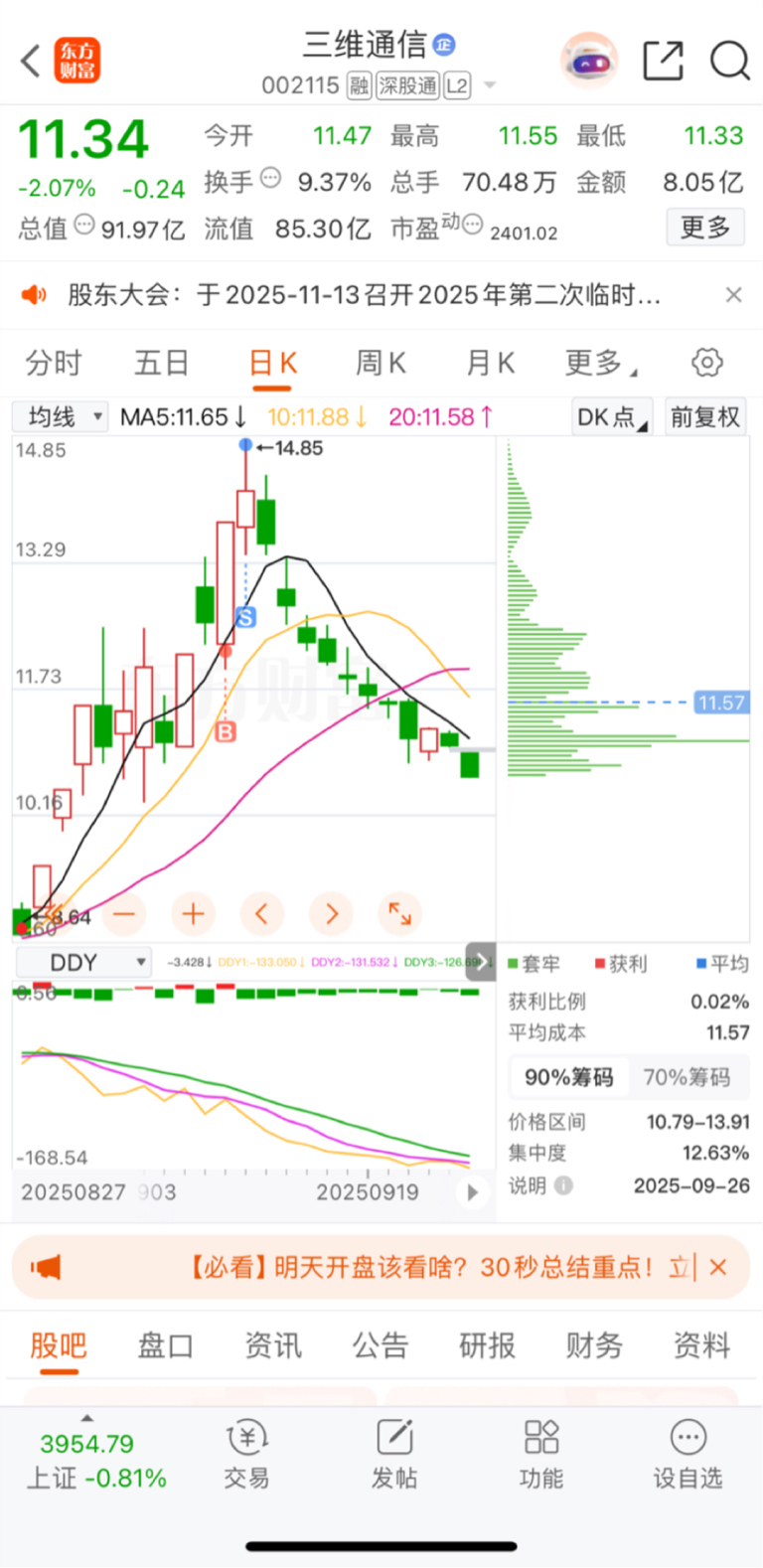 $三维通信(SZ002115)$ 这个票就买了一次,现在看成功逃顶