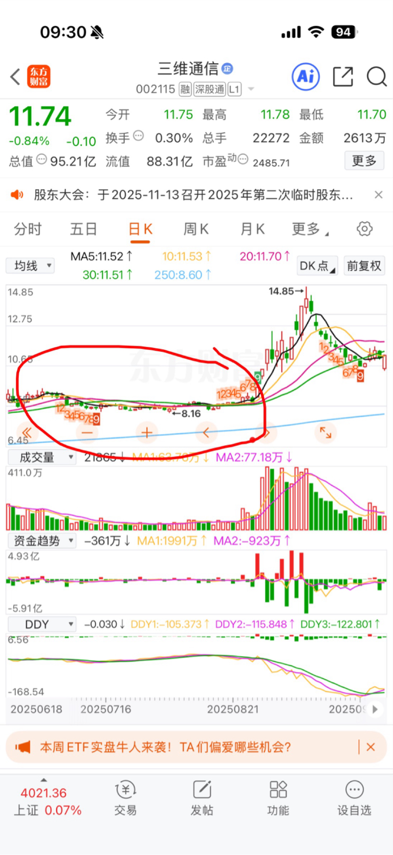 $三维通信(SZ002115)$ 像这个时间段走势,一直横盘,突然启动