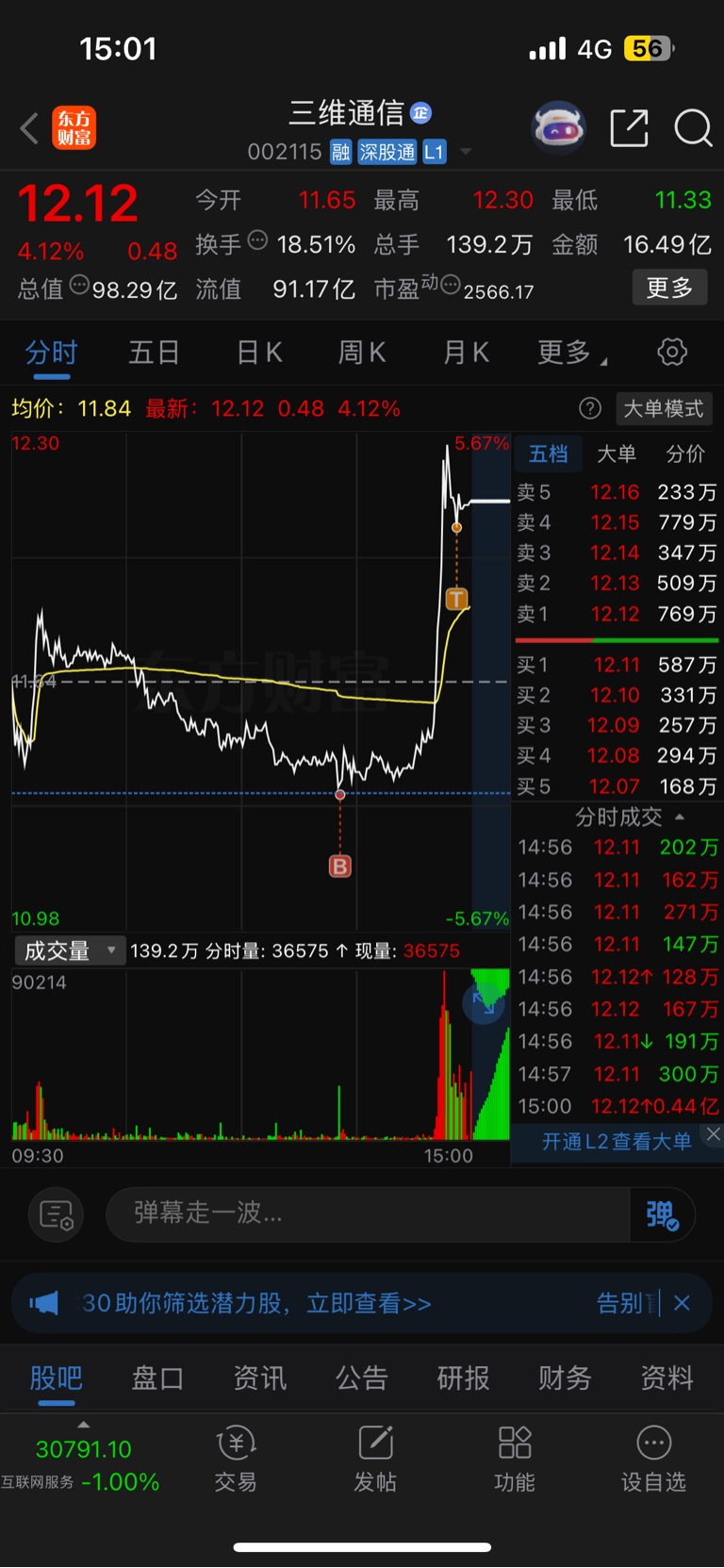 $三维通信(SZ002115)$ 精准抄底,拉上去t出去。