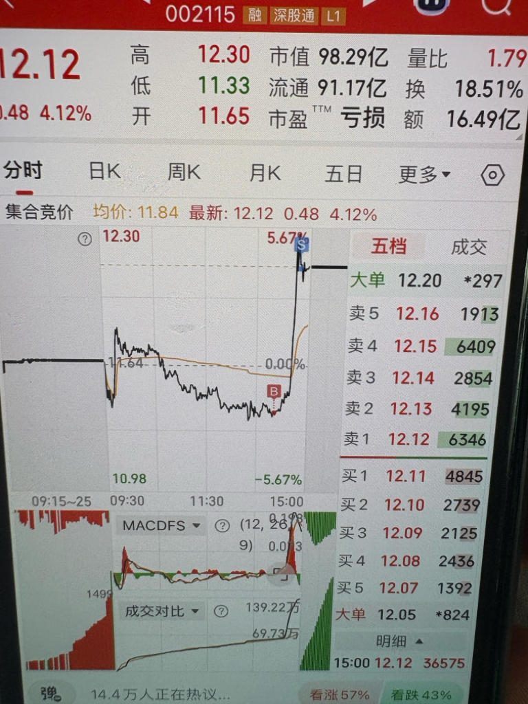 $三维通信(SZ002115)$ 市场不确定因素太大,明天涨停还有底仓