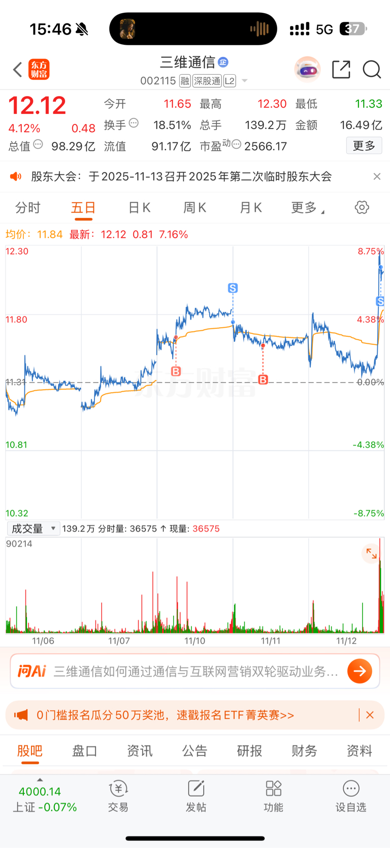 $三维通信(SZ002115)$ 暂时先卖了。择机再买。