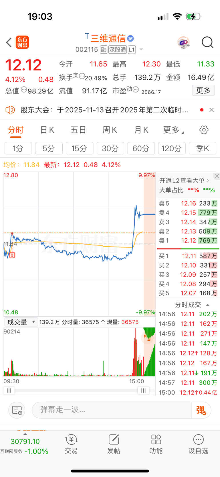 $三维通信(SZ002115)$ 今天早上开盘最高点买的,以为挂山顶了。