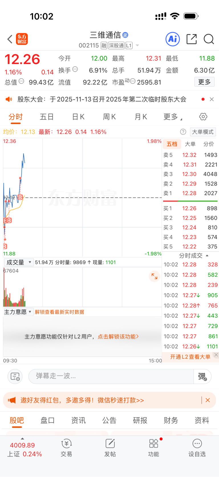 $三维通信(SZ002115)$ 我买了,主力给我拉涨停
