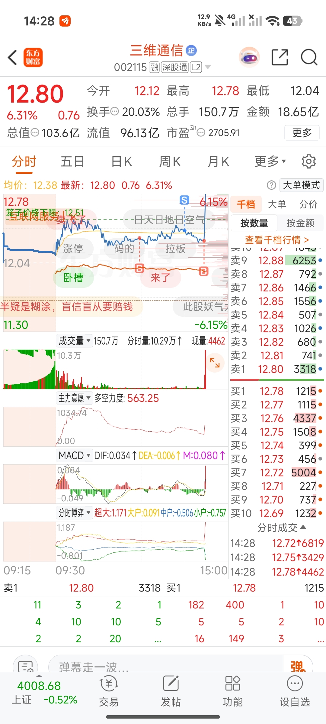 $三维通信(SZ002115)$ 幸好没有睡觉盯盘了