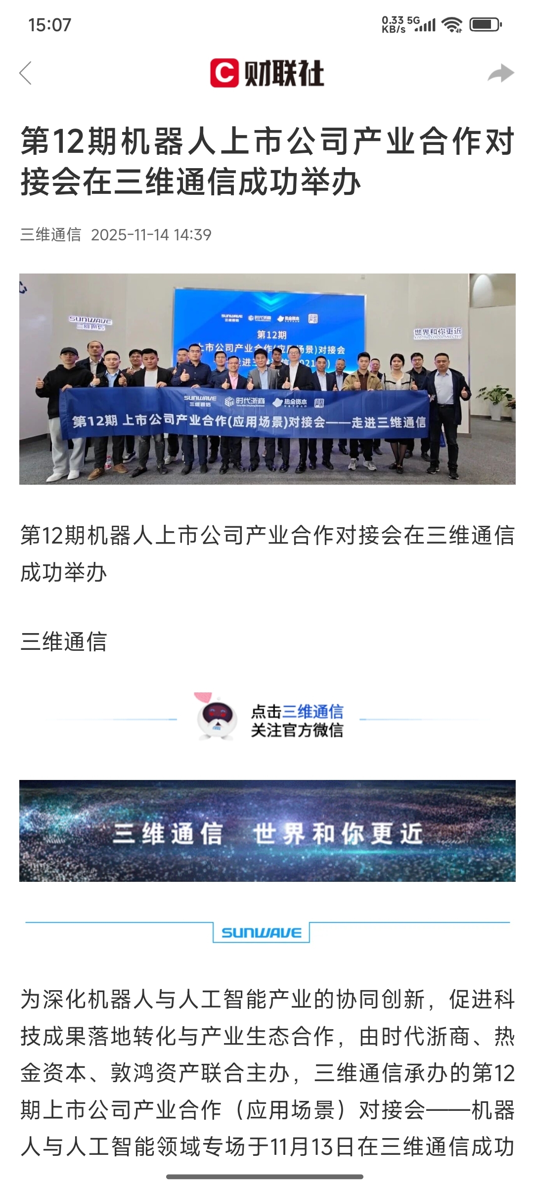$三维通信(SZ002115)$ 是这个破新闻拉的吗?