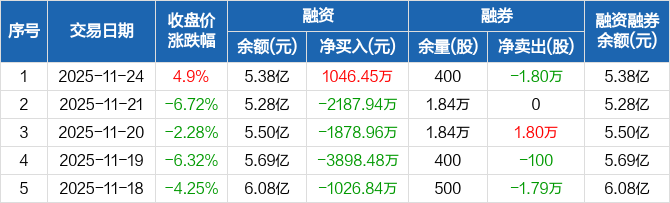 三维通信:融资净买入1046.45万元,融资余额5.38亿元(11-24)
