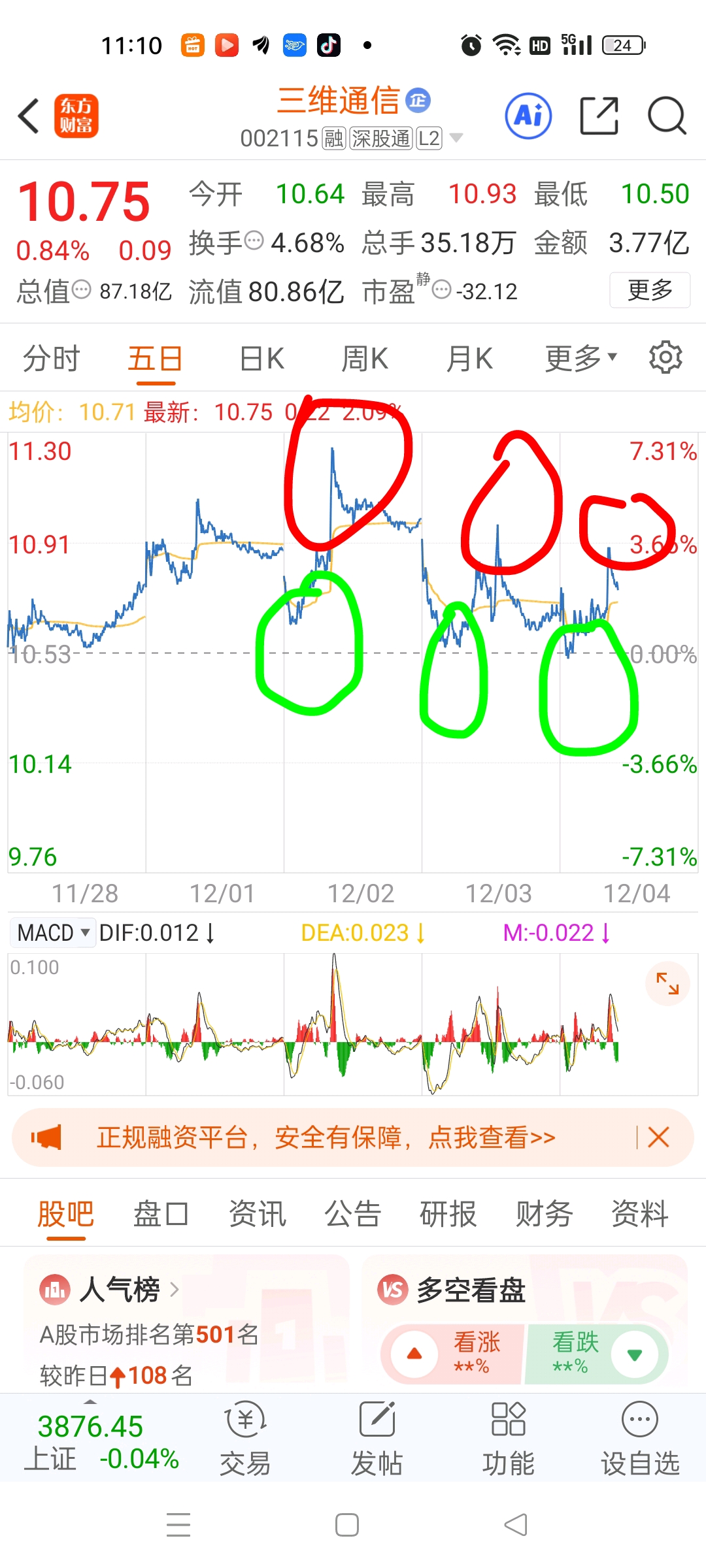 $三维通信(SZ002115)$ 一个低点比一个低点低,哈哈