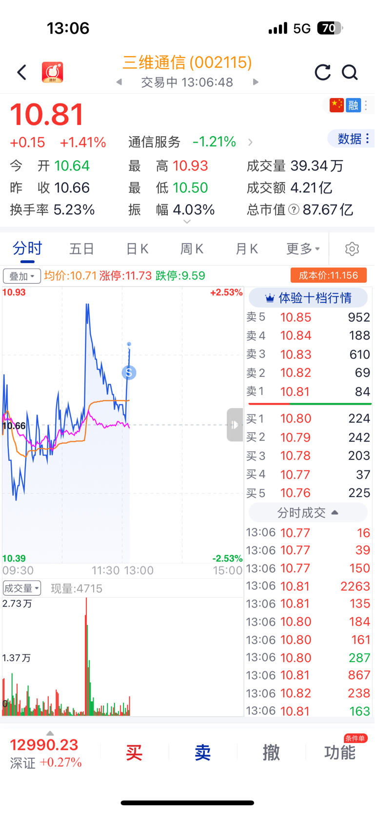 $三维通信(SZ002115)$ 我也走些,早上没看到,现在走一半