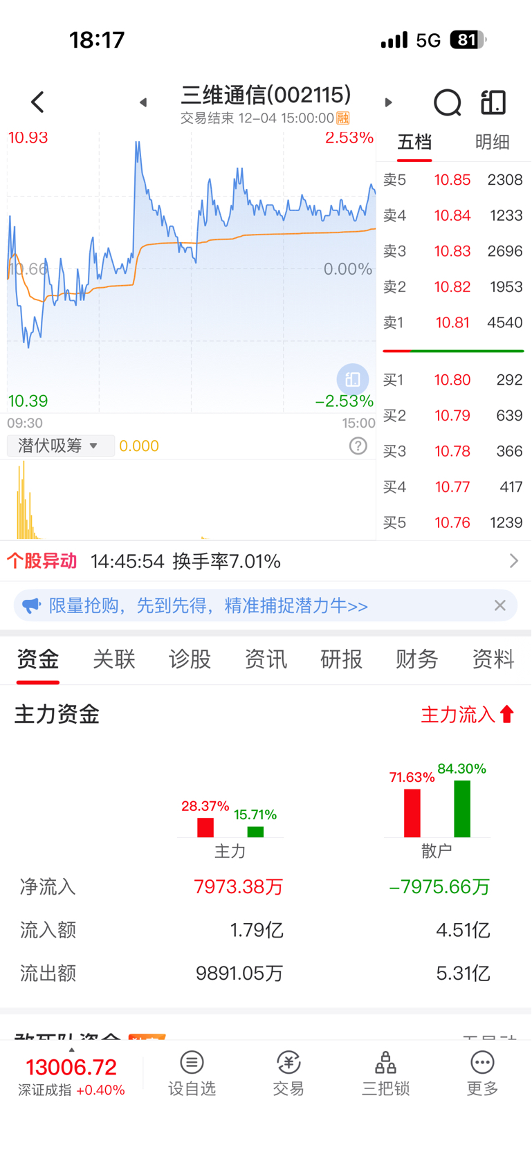 $三维通信(SZ002115)$ 今天怎么又走了这么多兄弟