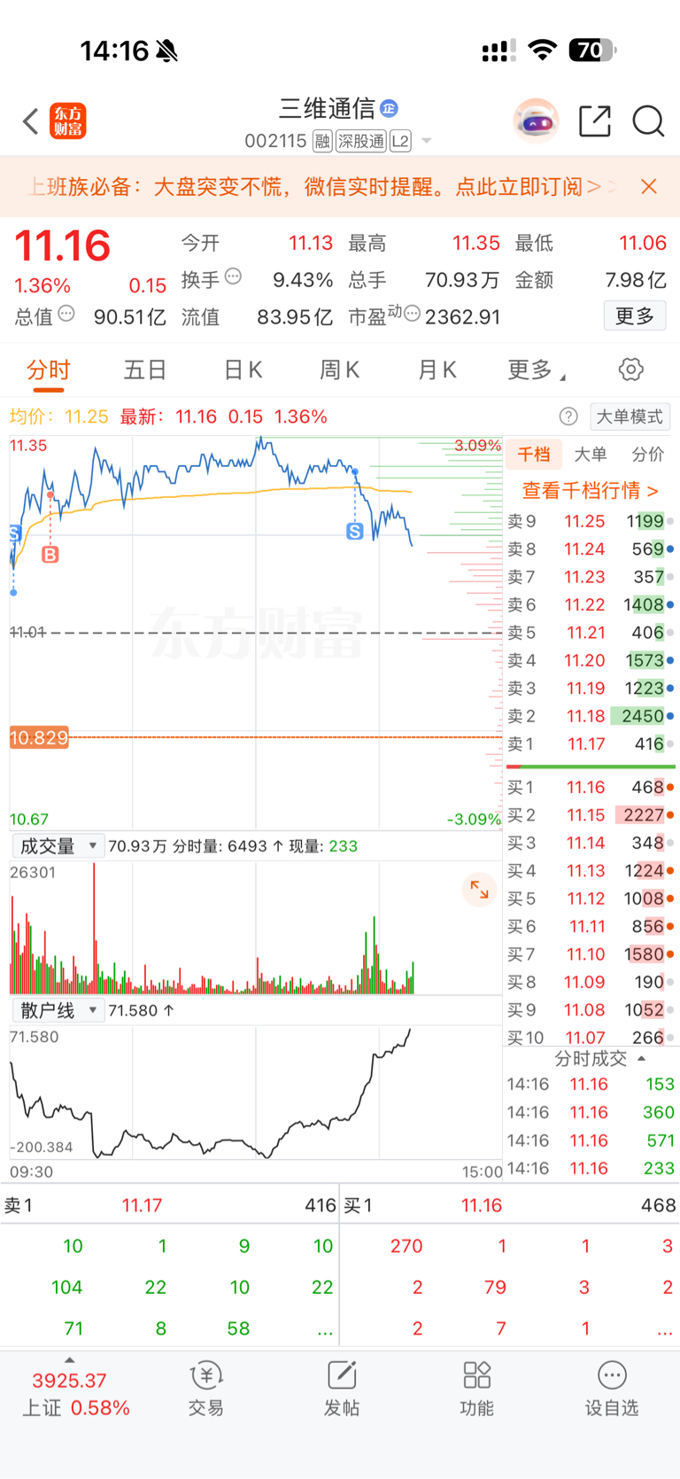 $三维通信(SZ002115)$ 果然啊 后排就是后排烂 涨的时候起不来 跌的时候第一个 还好t走了底仓