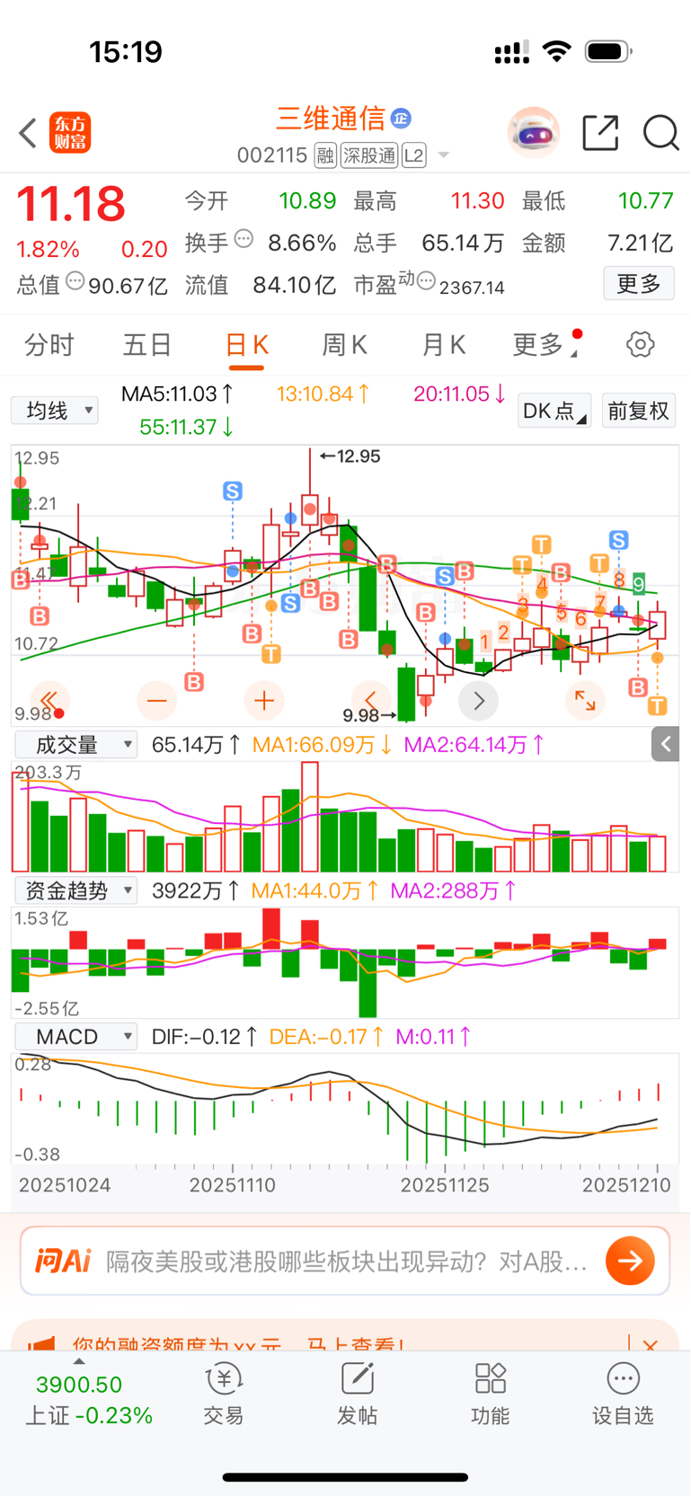 $三维通信(SZ002115)$ 一买一个不吱声!