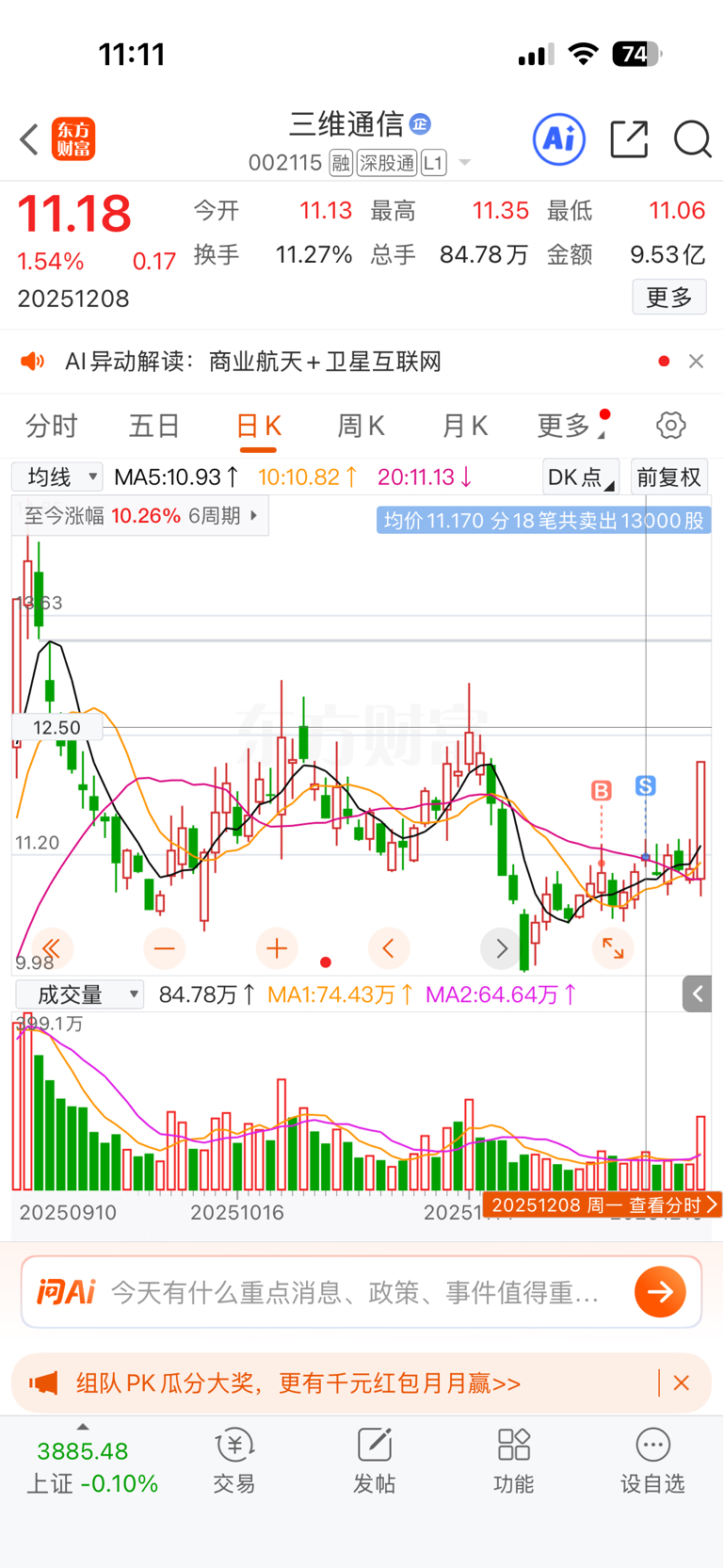 $三维通信(SZ002115)$ 刚卖你就涨