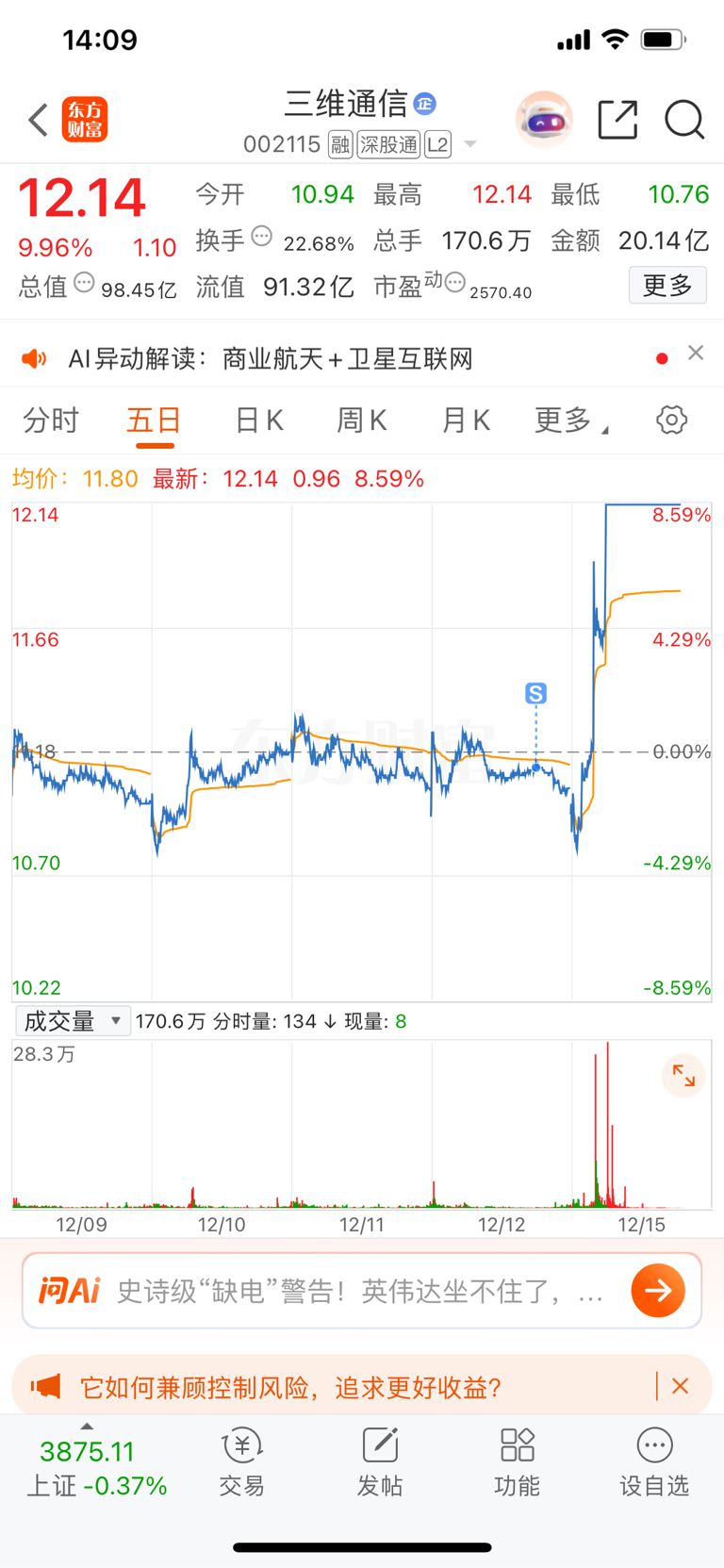 $三维通信(SZ002115)$ 股市明灯,nmd