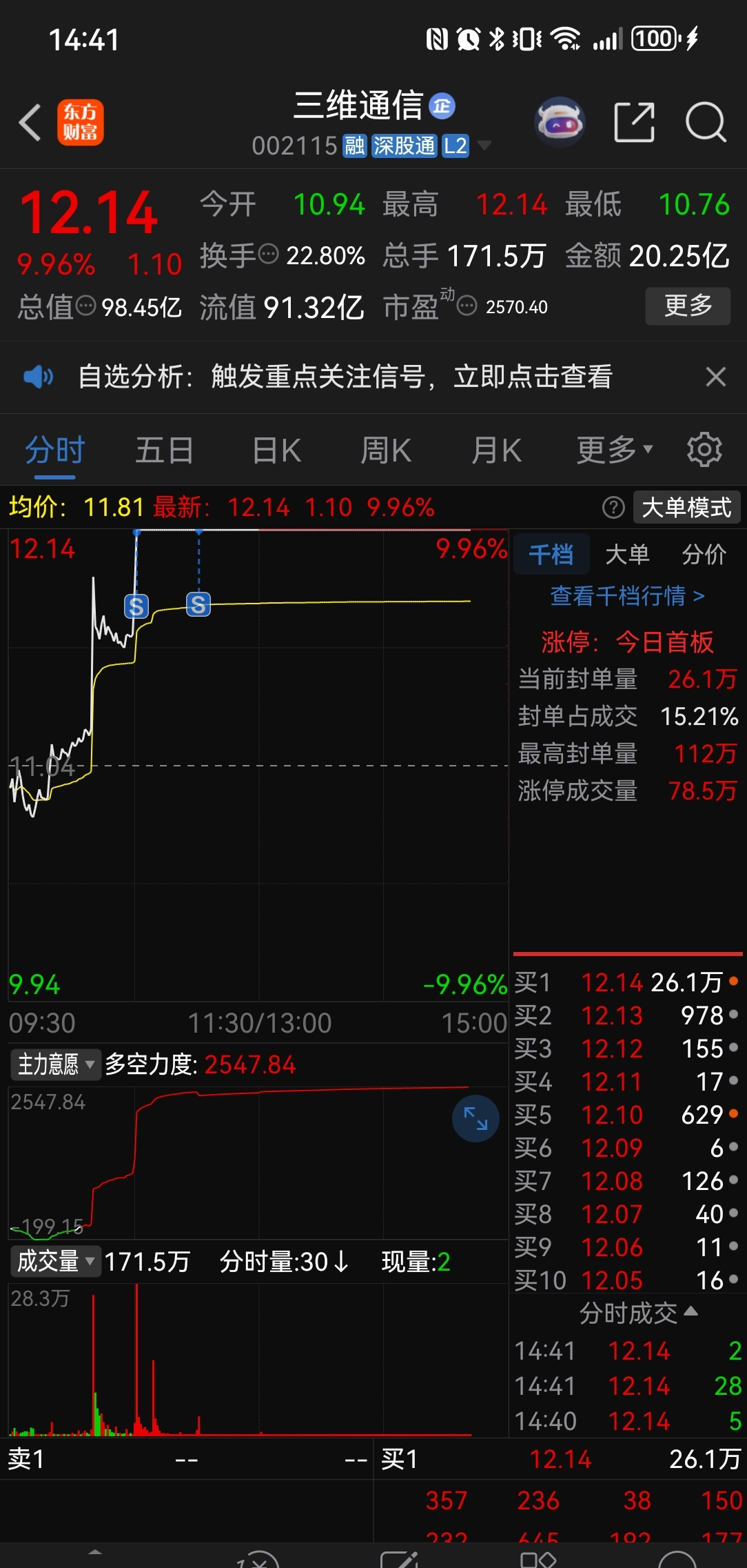 $三维通信(SZ002115)$ 上午回本清仓了,感觉卖飞了