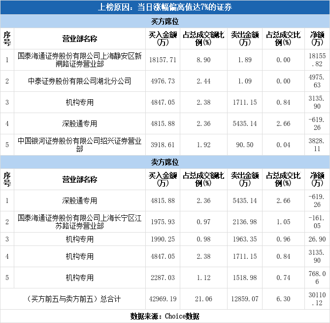 多主力现身龙虎榜,三维通信涨停(12-15)
