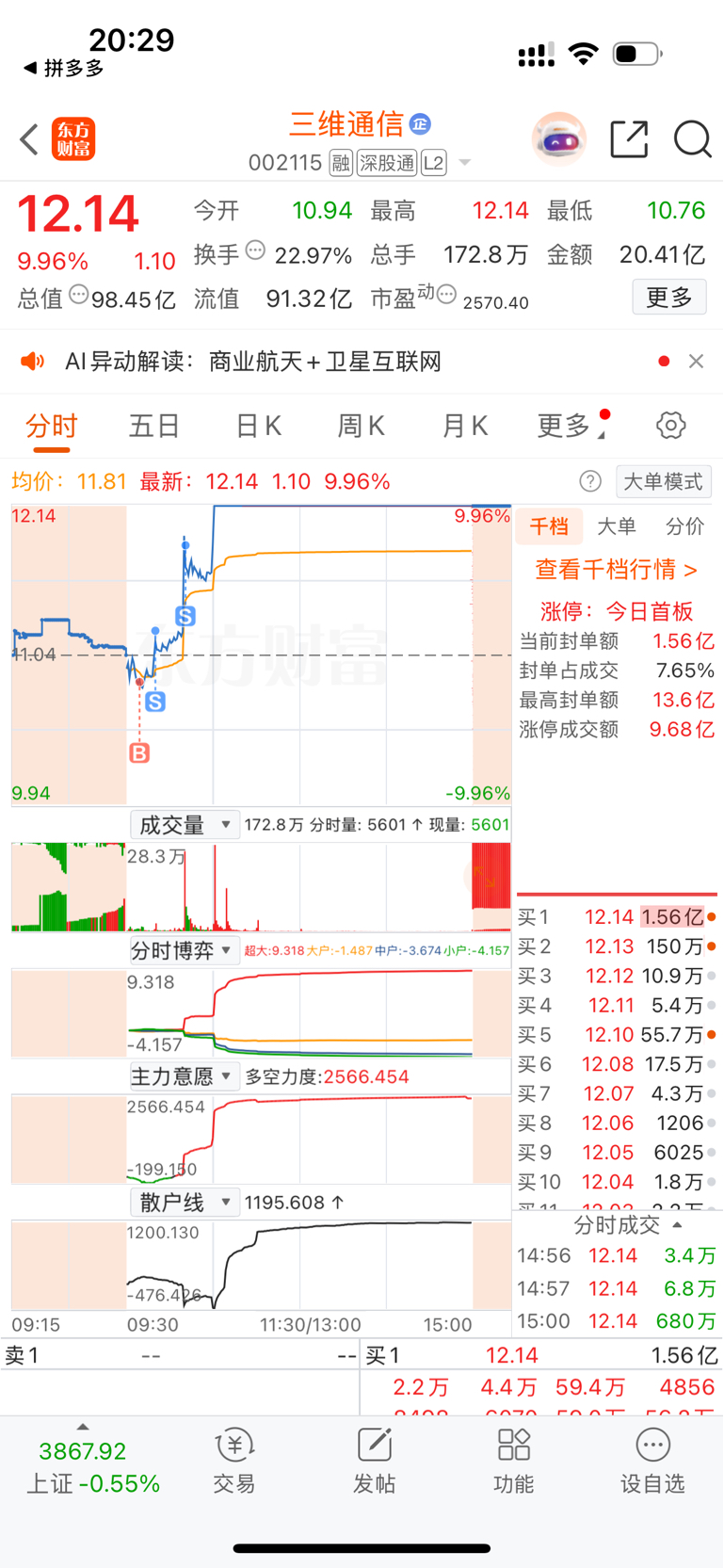 $三维通信(SZ002115)$ 走了一半,守住了!