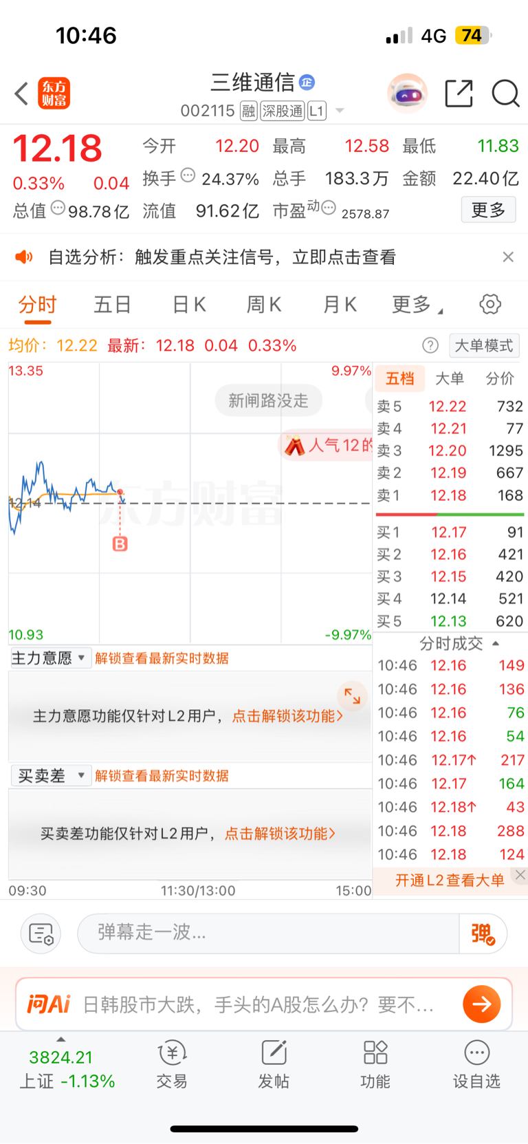 $三维通信(SZ002115)$ 丫有没卖掉无语死了,赚钱了没走,现在可以了还亏几分钱