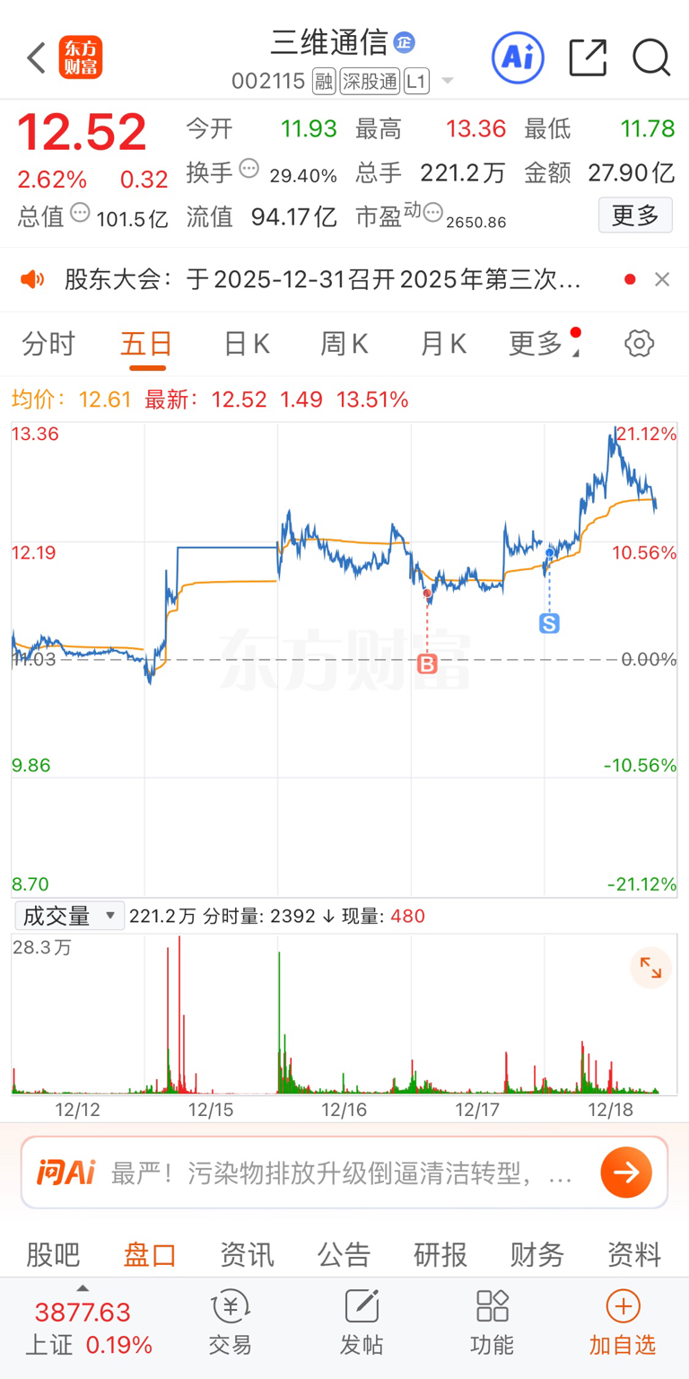 $三维通信(SZ002115)$ 早上要睡觉直接s了,下午醒来冲板了
