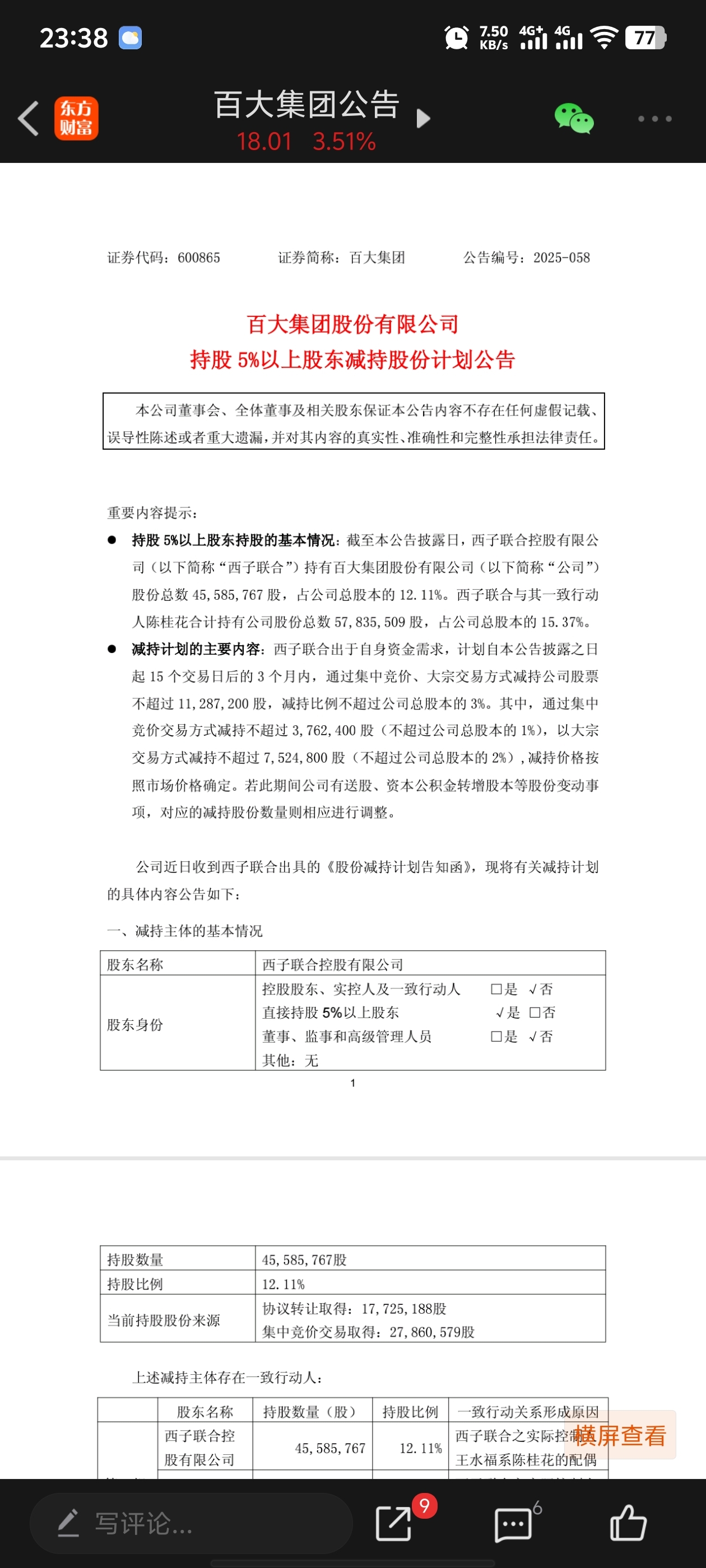 不用焦虑,去看一下百大的减持,11月15号公告,再看看现在的股价