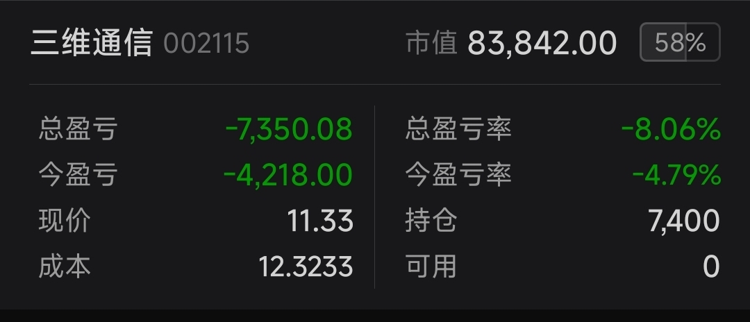$三维通信(SZ002115)$ 12.32入手了7400股本想赚点零花钱,一买进碰到了这个发瘟的减持。昨天格局一下不走,目前亏了7350!兄弟们跟我一样价格的还有吗?