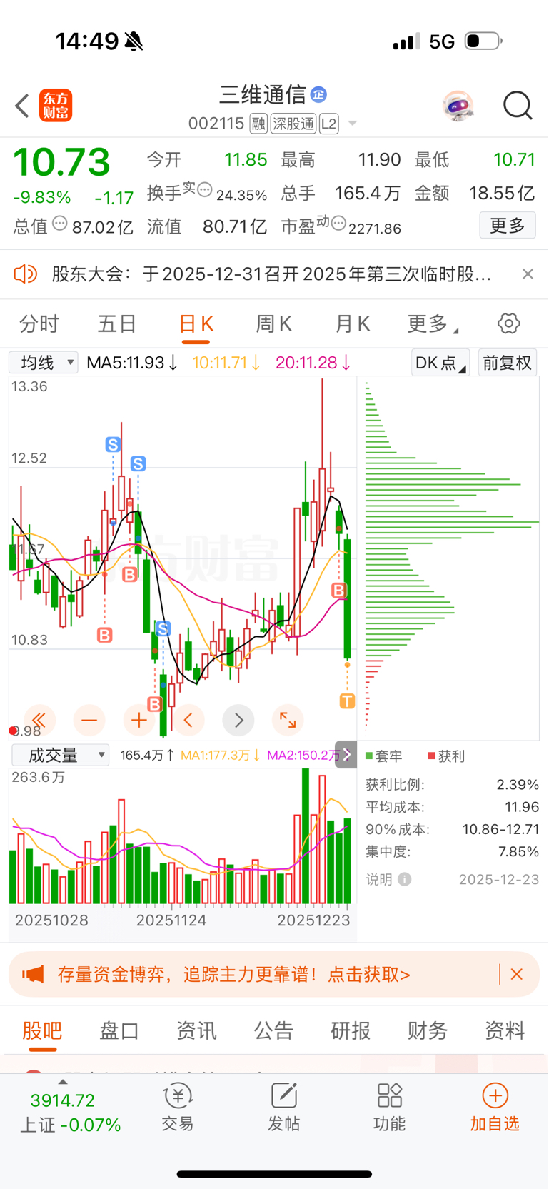 $三维通信(SZ002115)$ 无力吐槽,还好只买了一点,这种玩法,主力也真是一点德不给自己留,这个票可以拜拜了,明天竞价割掉。