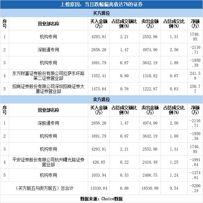 多主力现身龙虎榜,三维通信下跌9.41%(12-23)
