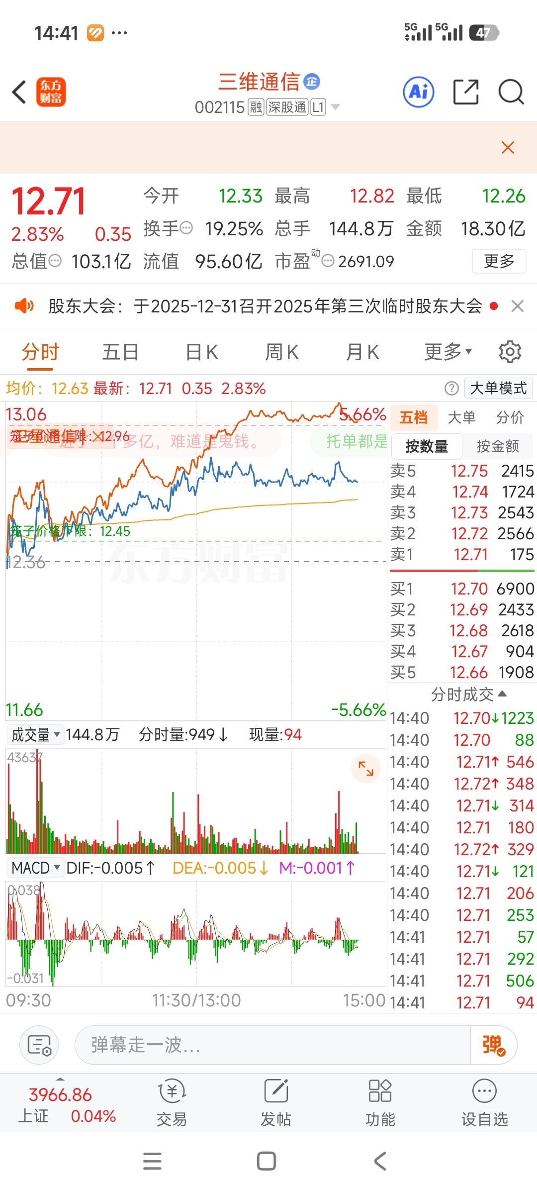 $三维通信(SZ002115)$ 板块大涨,你不跟,板块回落你比兔子还快。