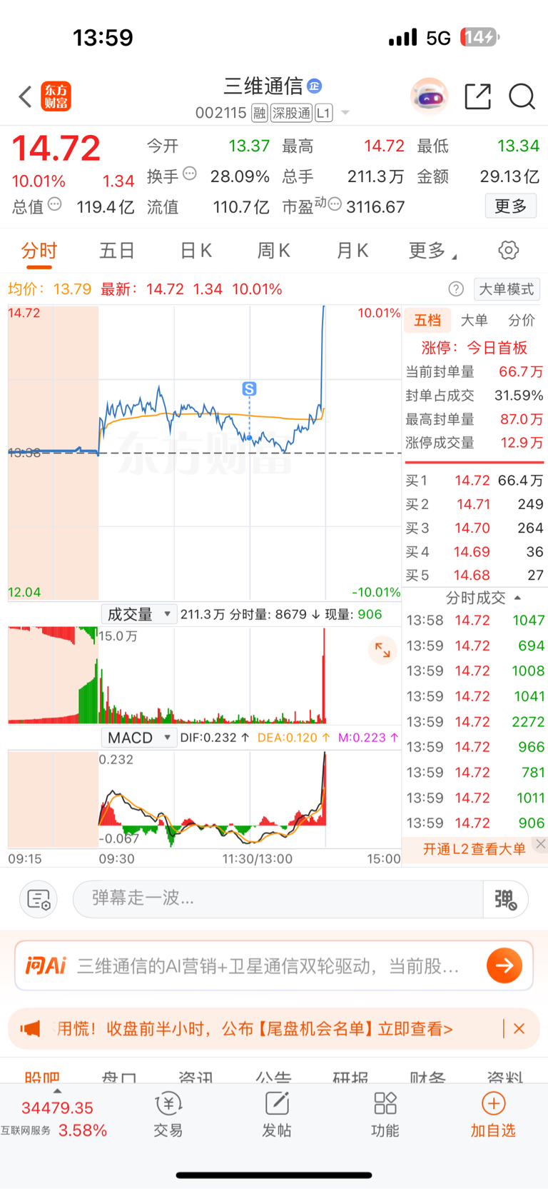 $三维通信(SZ002115)$ 把我洗出去了