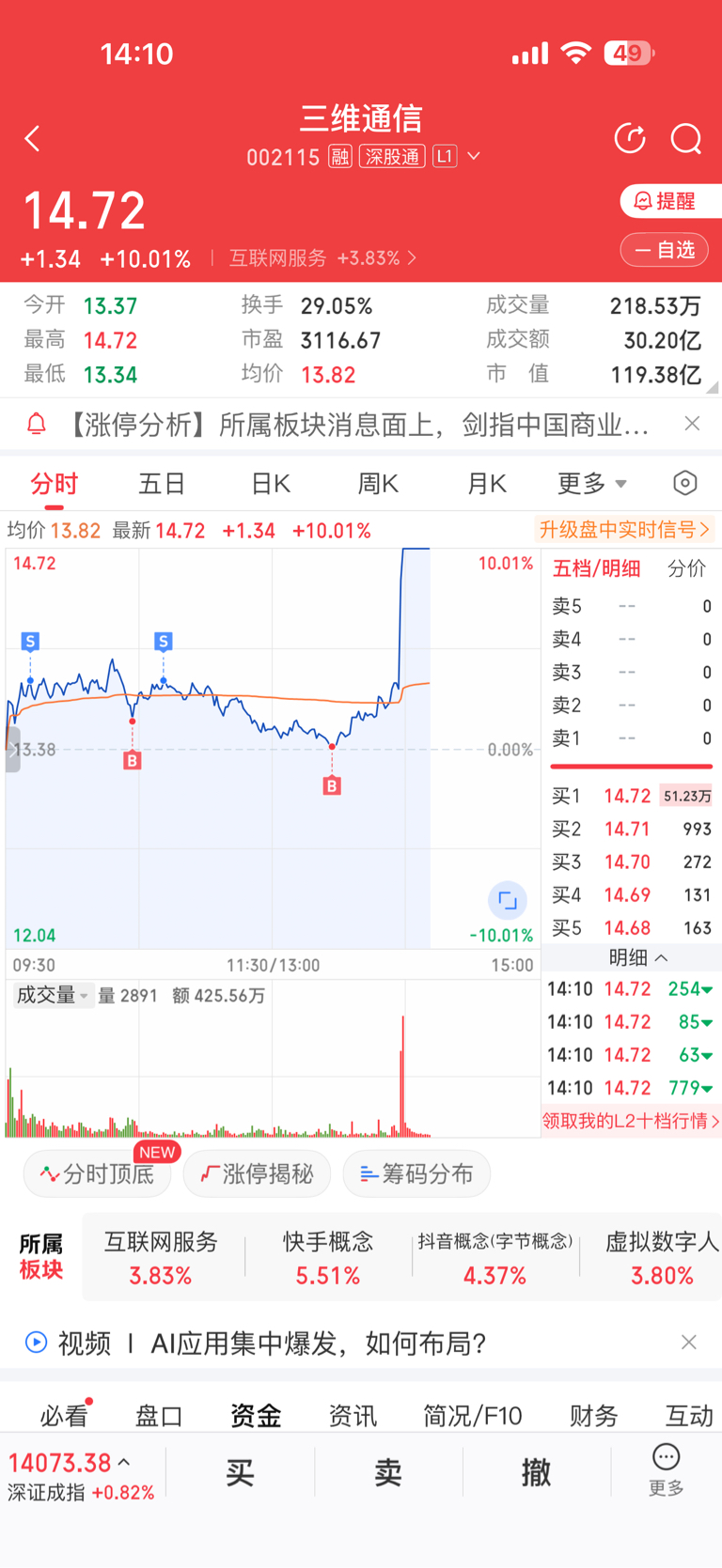 $三维通信(SZ002115)$ 还好没T飞