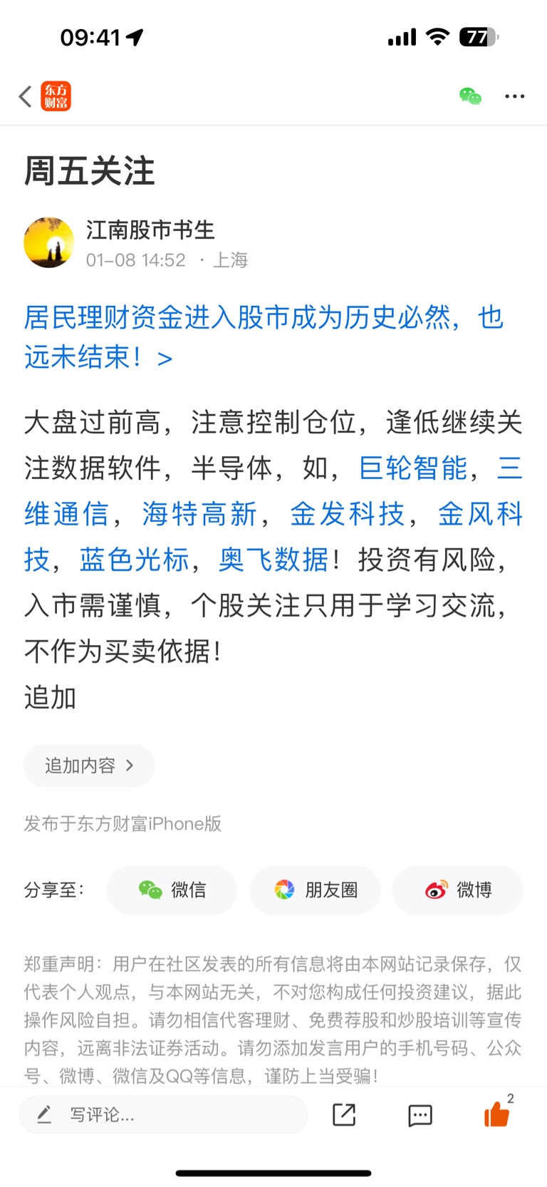 温馨提示: 1.根据《证券法》规定,禁止编造、传播虚假信息或者误导性信息,扰乱证券市场;2.用户在本社区发表的所有资料、言论等仅代表个人观点,与本网站立场无关,不对您构成任何投资建议。用户应基于自己的独立判断,自行决定证券投资并承担相应风险。《东方财富社区管理规定》