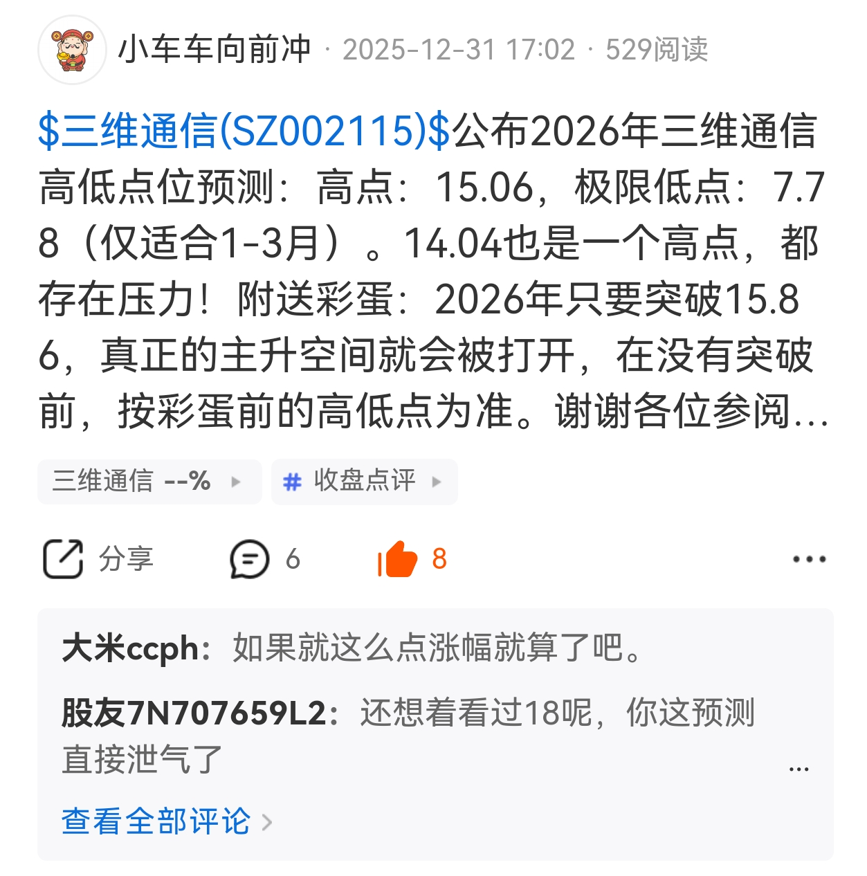 $三维通信(SZ002115)$ 此贴的含金量正在上升!
