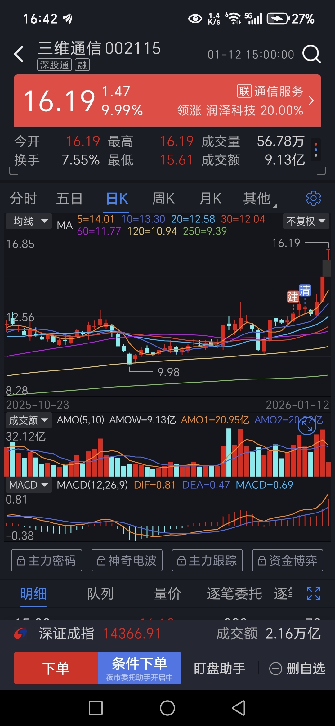 $三维通信(SZ002115)$ 起码三个一字板!连板起飞了!唉!!