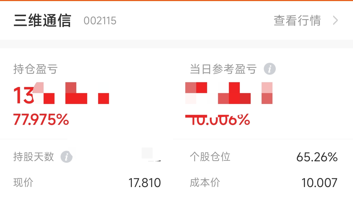 $三维通信(SZ002115)$ 要求不高,翻倍就走