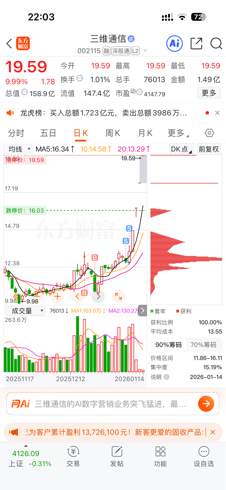 $三维通信(SZ002115)$ 差点就被我赚到了