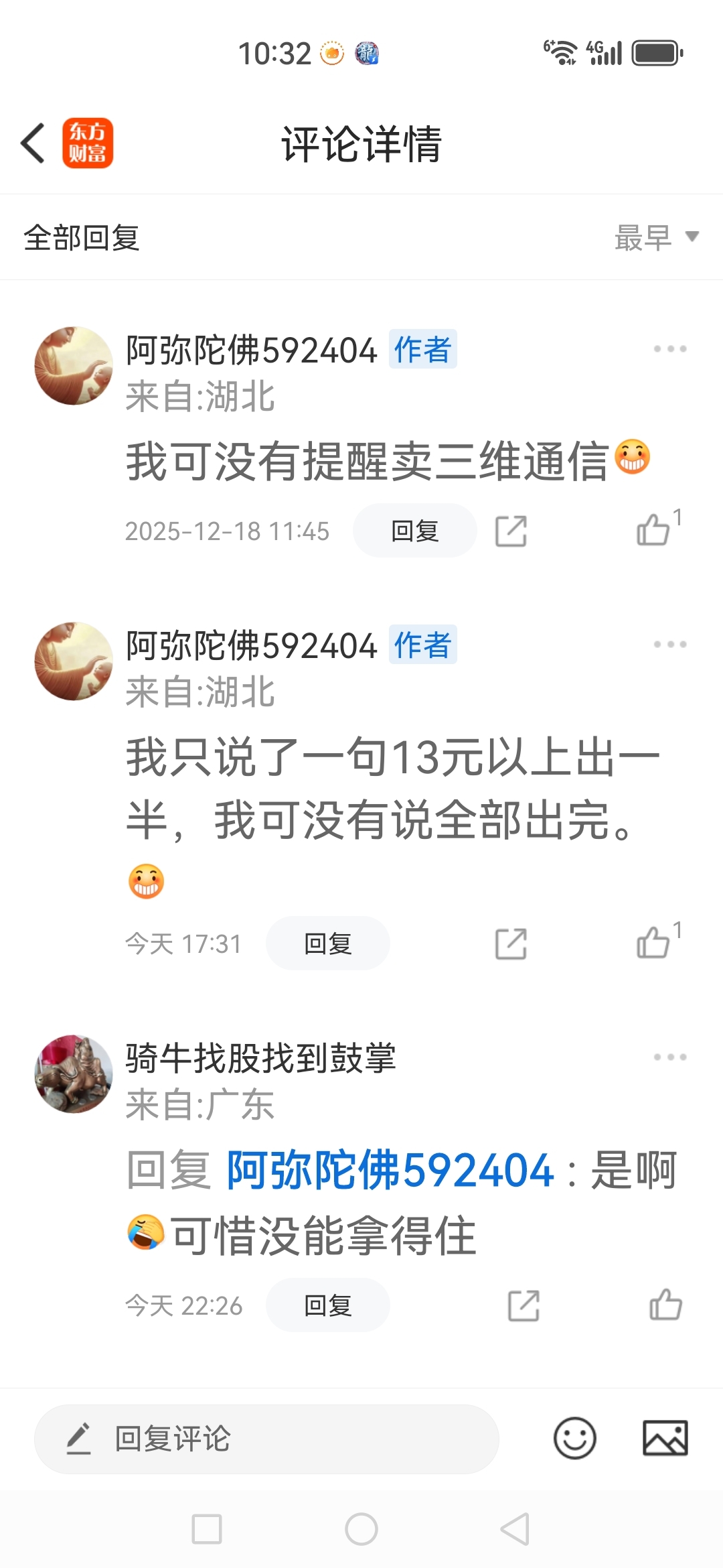 温馨提示: 1.根据《证券法》规定,禁止编造、传播虚假信息或者误导性信息,扰乱证券市场;2.用户在本社区发表的所有资料、言论等仅代表个人观点,与本网站立场无关,不对您构成任何投资建议。用户应基于自己的独立判断,自行决定证券投资并承担相应风险。《东方财富社区管理规定》