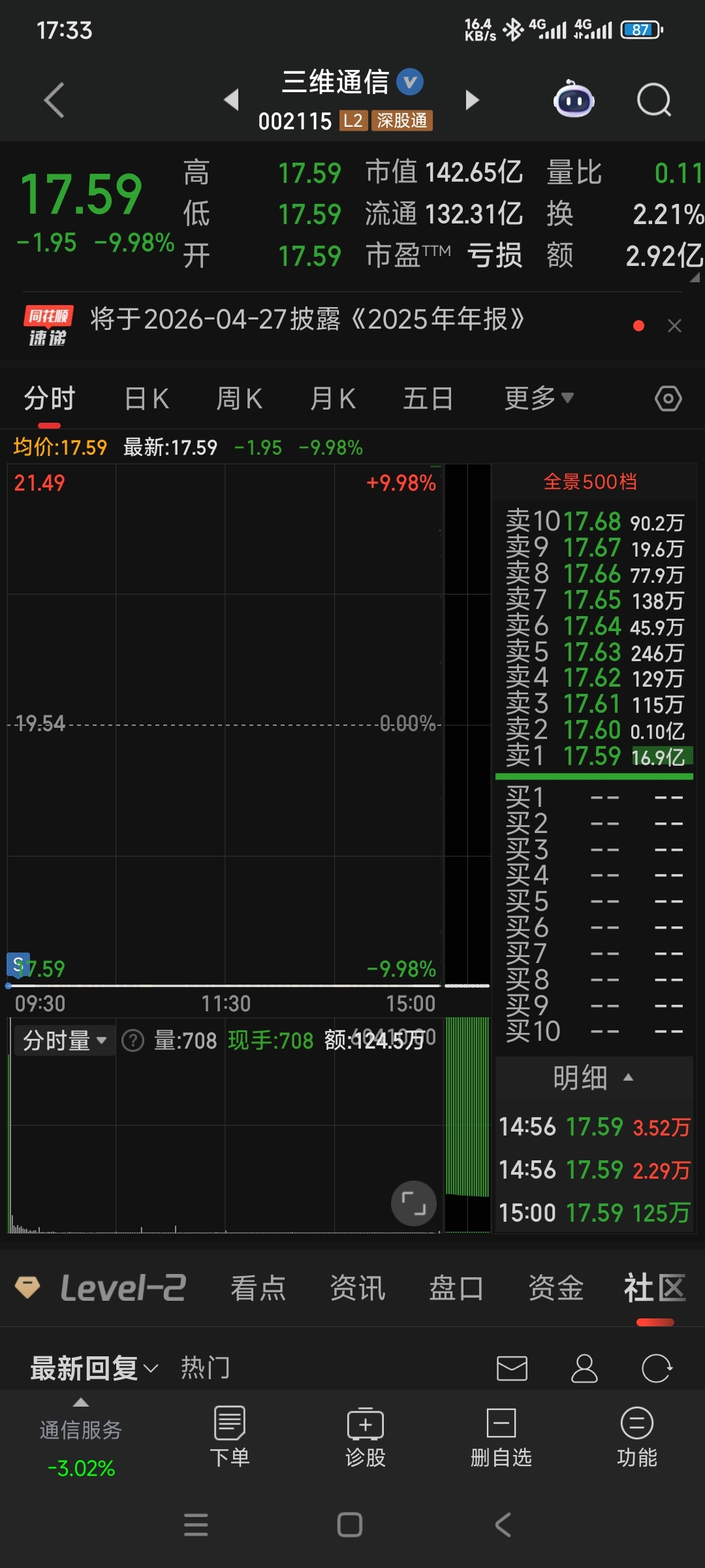 $三维通信(SZ002115)$ 亏-17%出来的