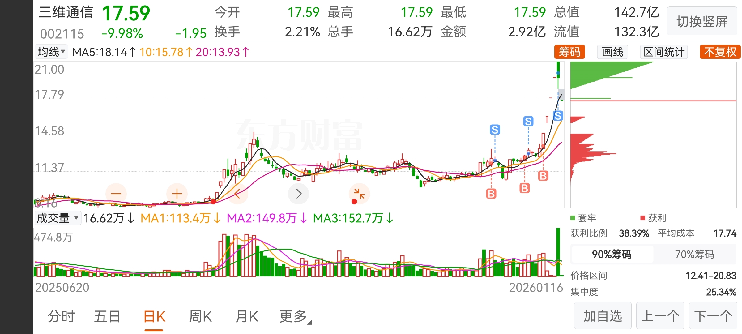 $三维通信(SZ002115)$ 到14.5左右支撑位就差不多了