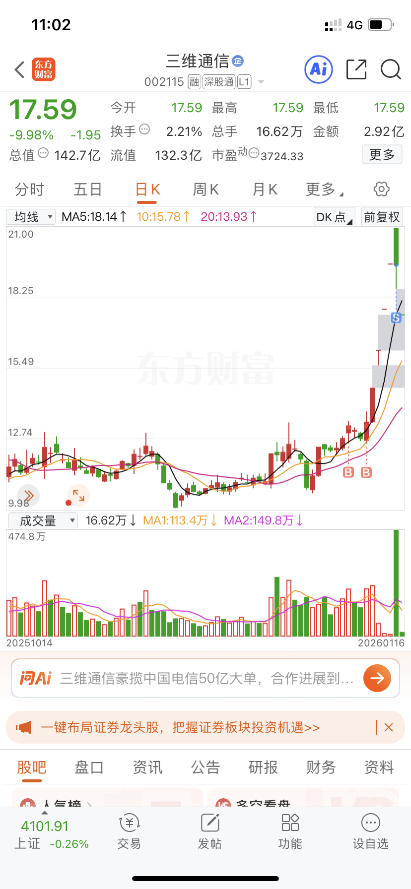 $三维通信(SZ002115)$  吃了4个板还好跑了
