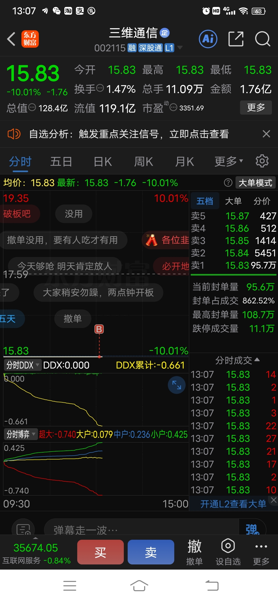 $三维通信(SZ002115)$ 生死由命,富贵在股市。兄弟们我来给你们接盘了,10000股够不够?不够再接