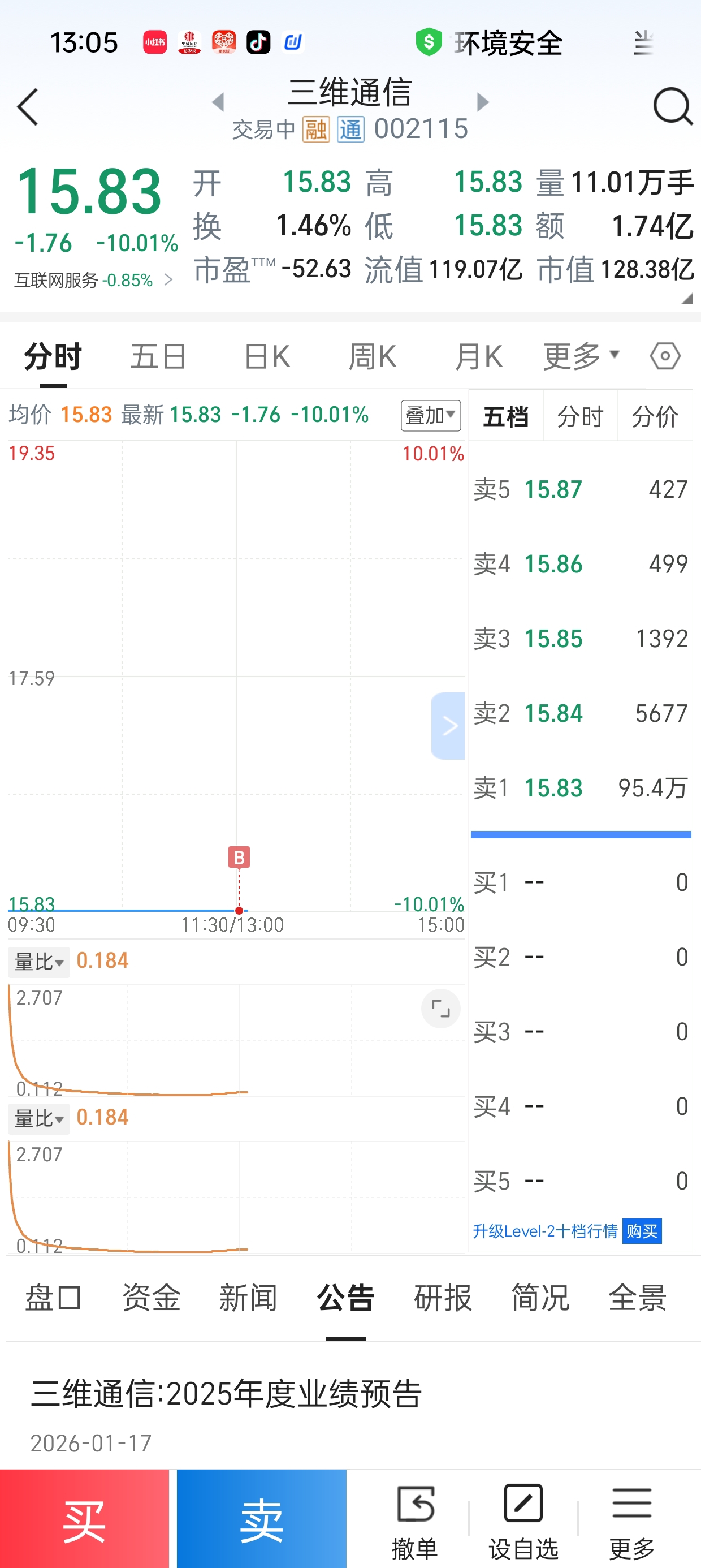 $三维通信(SZ002115)$ 各位股东一人一万,直接拉个地天板