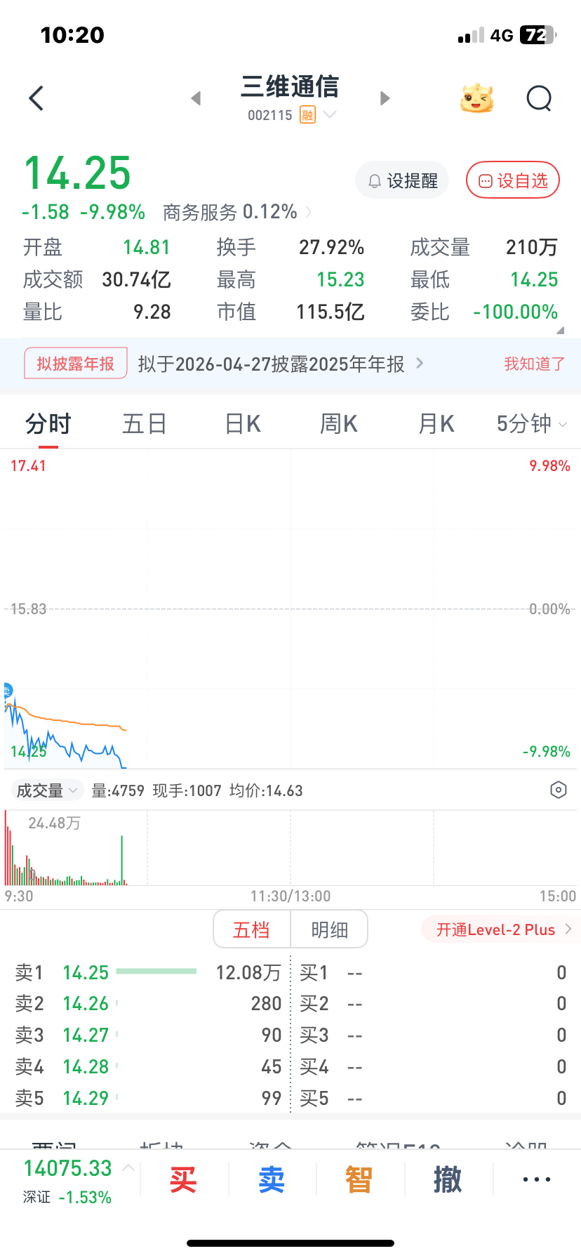 $三维通信(SZ002115)$ 15.1走了你们自已玩