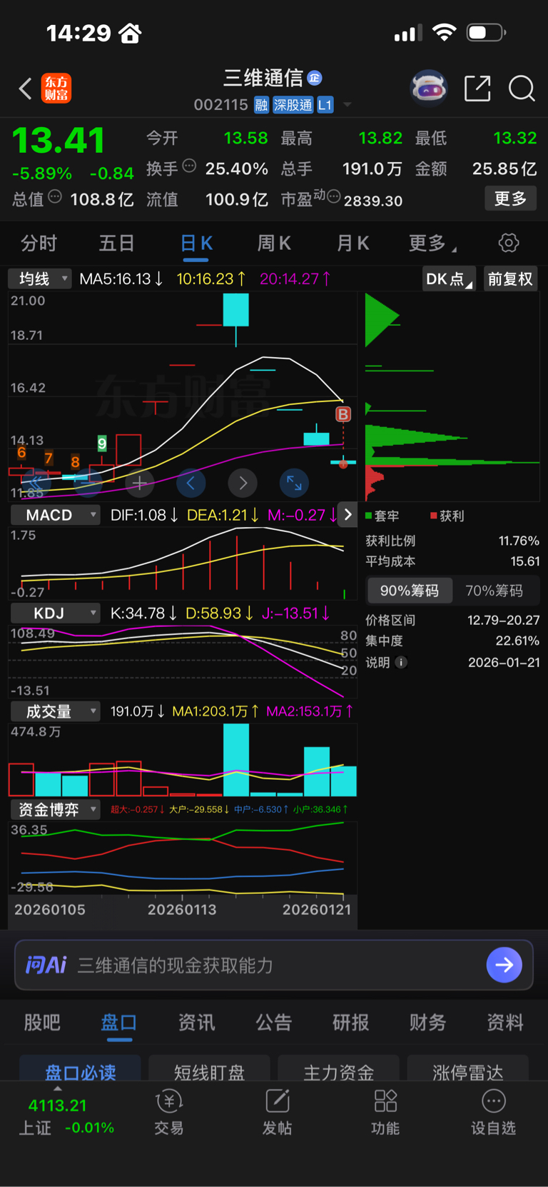 $三维通信(SZ002115)$ 周五之前肯定走,我来咬一口,挣多挣少都会走…… 其实你们割肉是对的,接下来肯定会慢慢跌!你们回本是根本不可能的……