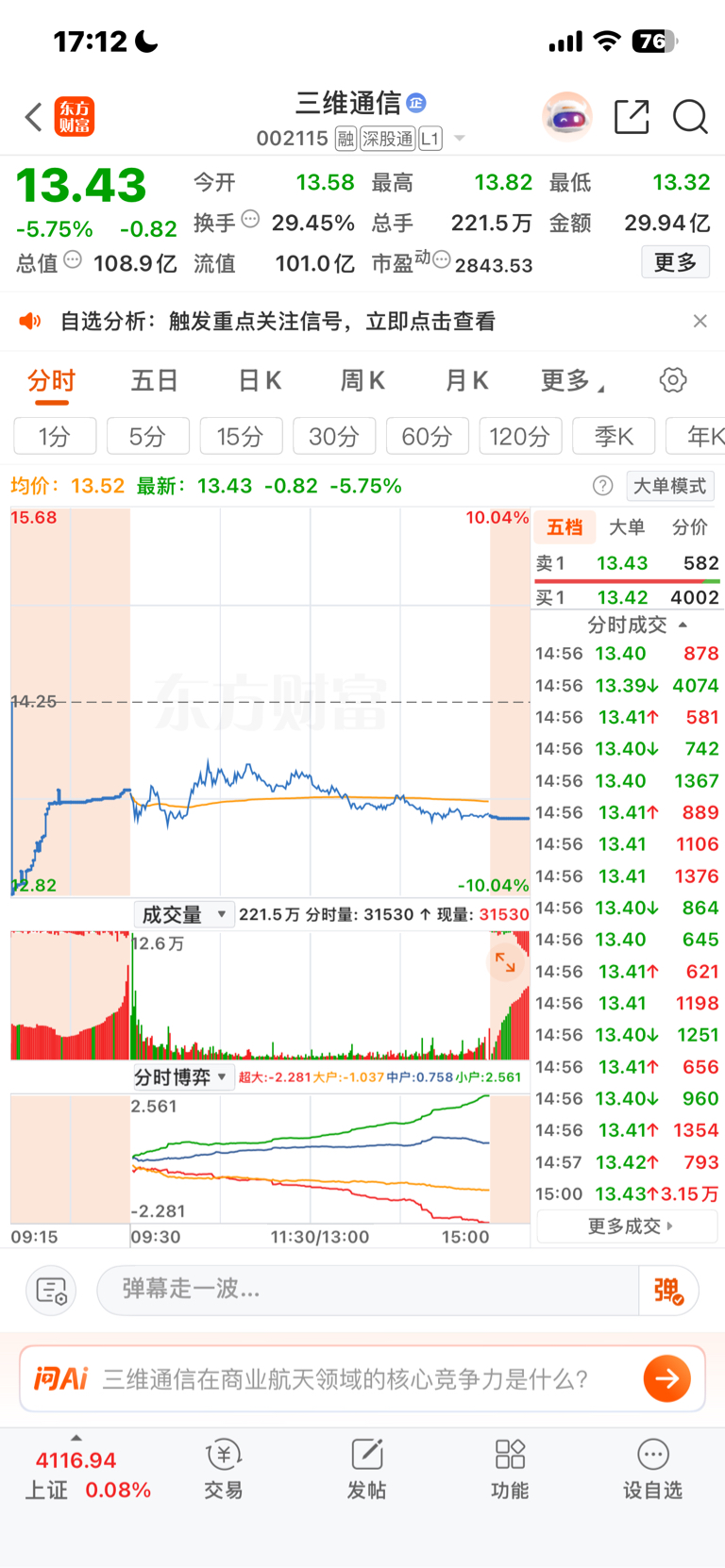 $三维通信(SZ002115)$ 大神们,明天合适建仓吗?