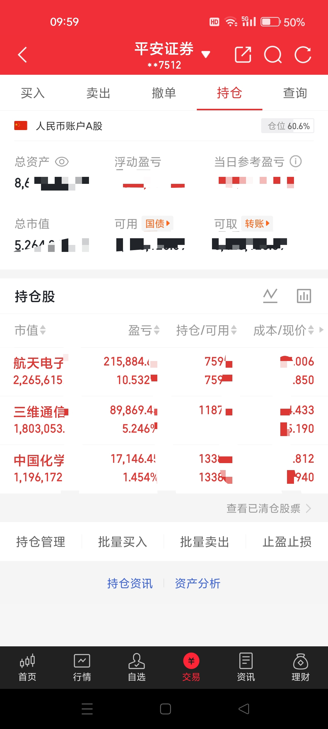 持仓:$航天电子(SH600879)$ ,$中国化学(SH601117)$
