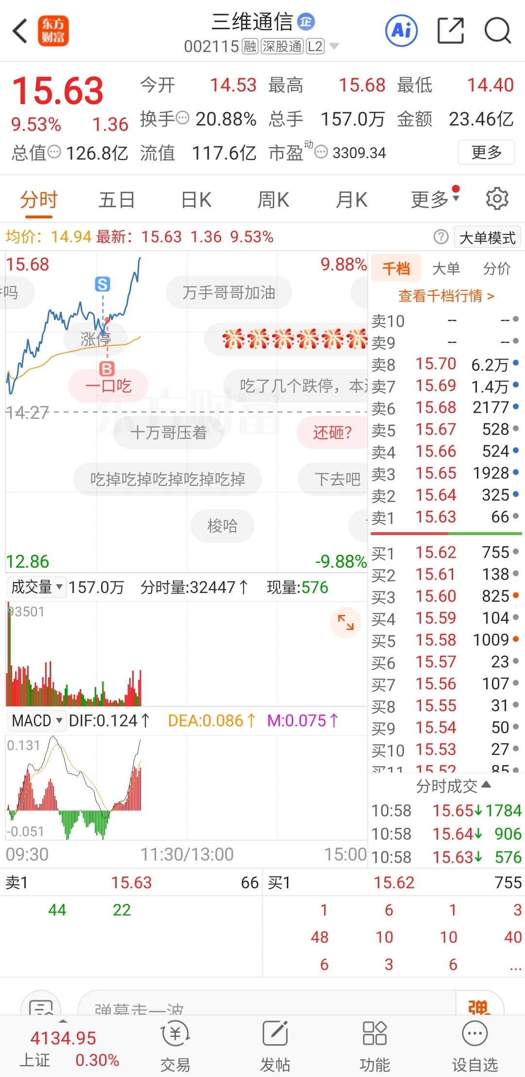$三维通信(SZ002115)$ 差一点做t,做飞了
