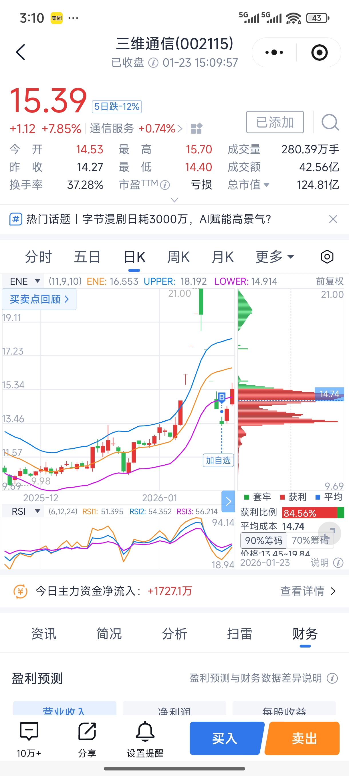 $三维通信(SZ002115)$ 15个点,有本事跟我跌完,你跳水我也不慌