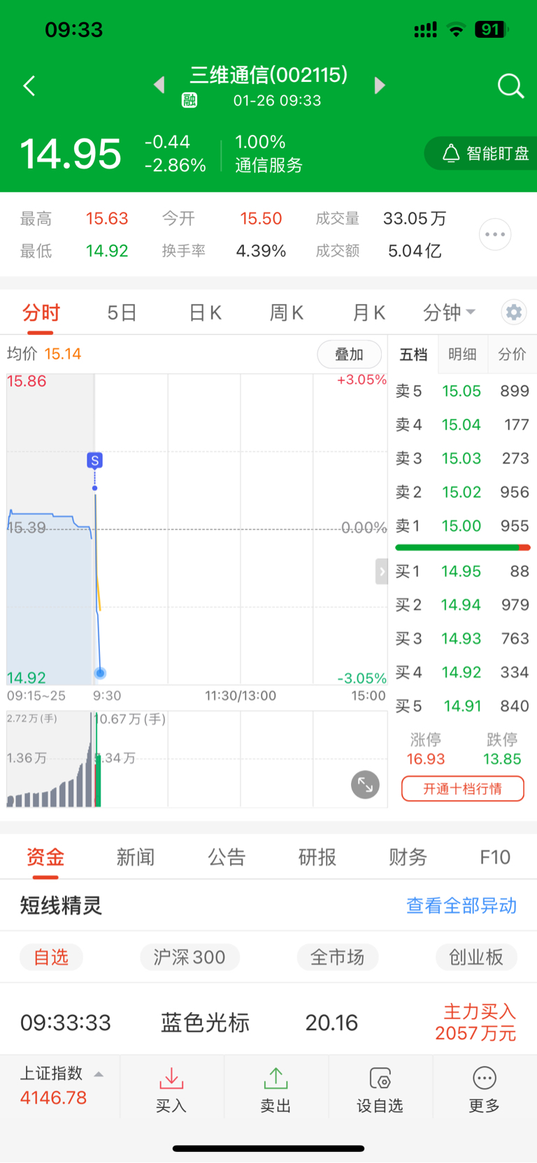 $三维通信(SZ002115)$ 15.6卖的