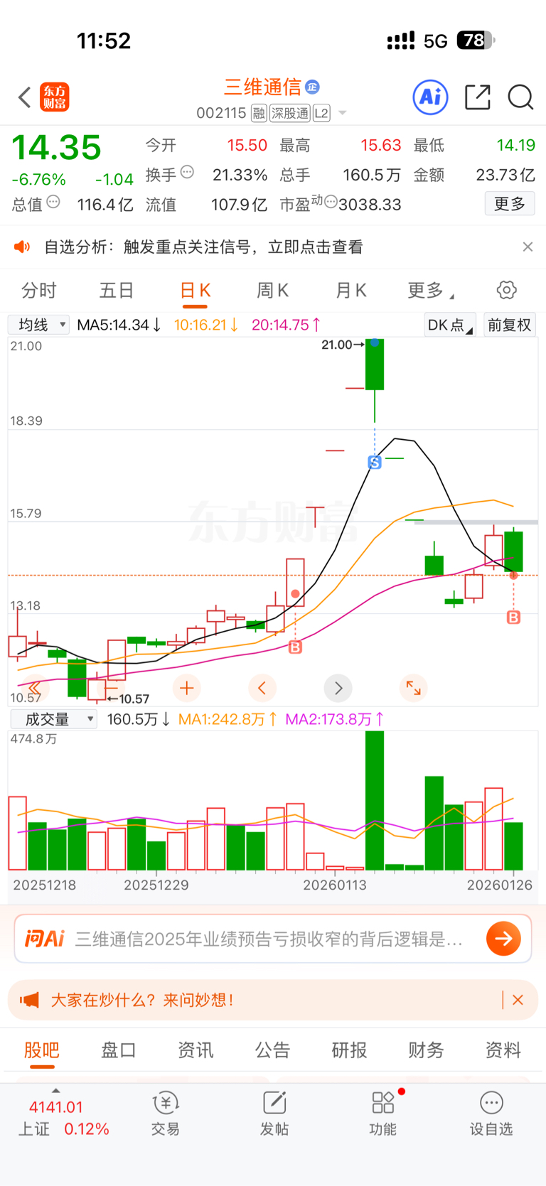 $三维通信(SZ002115)$ 我上车了,可以拉了